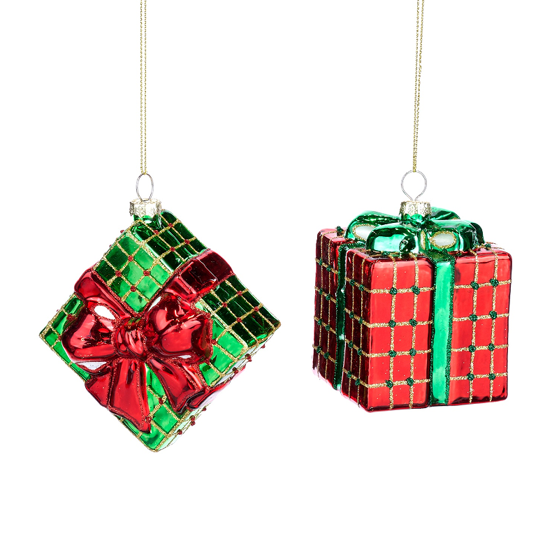 Gorgeous Gift Boxes Glass Ornaments 4.75" (Set of 2)