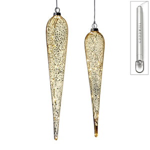 - LED Illuminated Glass Champagne Gold Icicle Ornaments