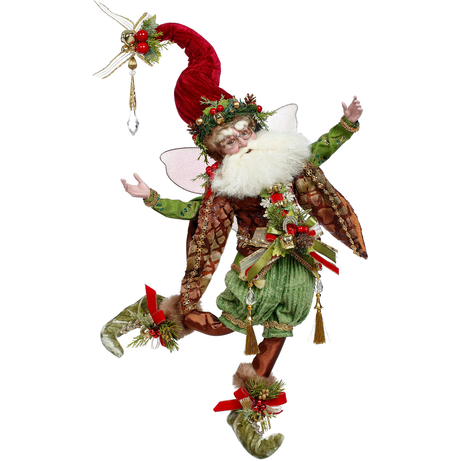 Sleighbells Ring Santa Fairy brings festive charm with his velvet and brocade costume, jingle bell accents and playful expression. Beautifully detailed and full of character, he makes a delightful addition to Christmas trees or mantel displays.